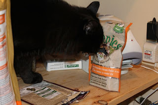 | Felix liberated the treat bag, dragged it to the floor and killed it! |