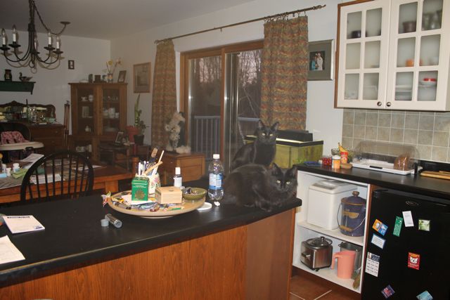 they bounce up and down off of the counter, despite stern warnings, while I'm putting out the cat food. You'd think they'd never been fed. They have the SPCA on speed dial. Starving poor critters they are.