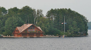 Just to the left of the "E" in Eilean Gowan Island.) He seems quite proud of it, despite some controversy. Cumming's been handing out press releases about his sculpture and doing interviews. I wouldn't want to see the monster in the fog! It doesn't seem to fit in with the peace, tranquility and beauty of cottage country. But that is just me, and my memories of cottaging in 1960 - 2010 in Muskoka! Cottaging sure has changed over my lifetime.