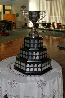 I donated my curling broom as an auction item for Ontario's 2014 Dominion Tankard. One of the volunteers took a photo of me with the Tankard!The Tankard cup competition begins TODAY!