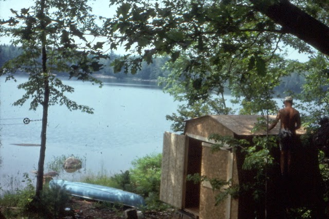 | Dad, building his shed. At the time it met the building code. It was only later that the township made rules about building close to the lake. Rightly so. |