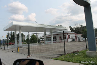 The Before shot is a photo I grabbed as a drive-by when I spotted someone who had driven up on their lawn tractor to get a fill-up. My lawn tractor holds about 10L of gas! You know you're in the country when... It is a busy spot, with trucks trying to make the turn onto Scotch Line Rd. They talked about creating a ring road around town, but it hasn't happened.