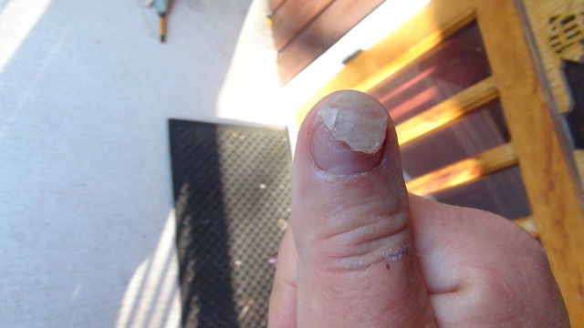 The problem with acrylic nails is they have to be sanded or filed off, after soaking them for 30 minutes to get off the 4 coats of nail polish! They were too long, by this point, and so I clipped them with the toe nail clippers. The snap is harsh. What a dumb thing to do for someone who is active outside.