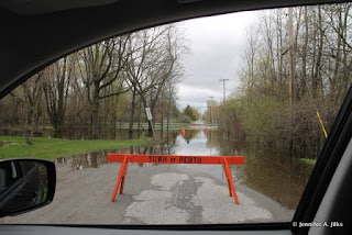 The gym and physio place is closed for the week. The road washed out, again. There is a wetland/flood plain in the forest, which used to drain into the Tay River. This road is a terrible road. It always floods, there are potholes and washouts all the time. You can imagine it during the freeze and thaws of our winters. First, Canal Bank Rd.