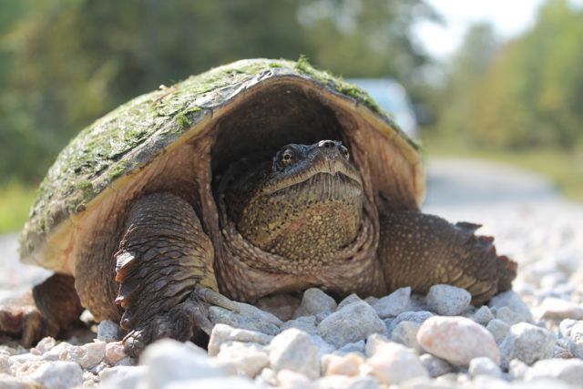 Most of our 8 species of turtles in Ontario are at risk on the continuum: special concern, threatened, or endangered. The 9th, eastern box turtle, is considered extirpated in Canada. While a lot of try to avoid them on the highway, sometimes it isn't possible. Snappers are 'special concern'.