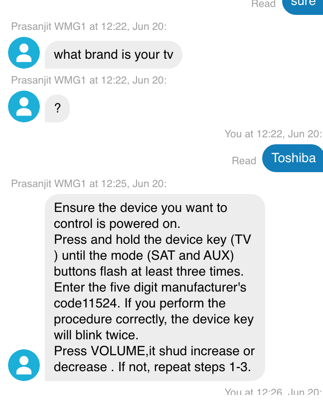 TV remote doesn't work. I did an online chat with Shaw, and they gave me the code. The manual didn't help! I put this here, just in case.
