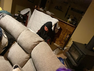 Josephine was doing some sewing in the basement. We interrupted her to watch a movie. Even Grampa smiled. It was fun entertainment.