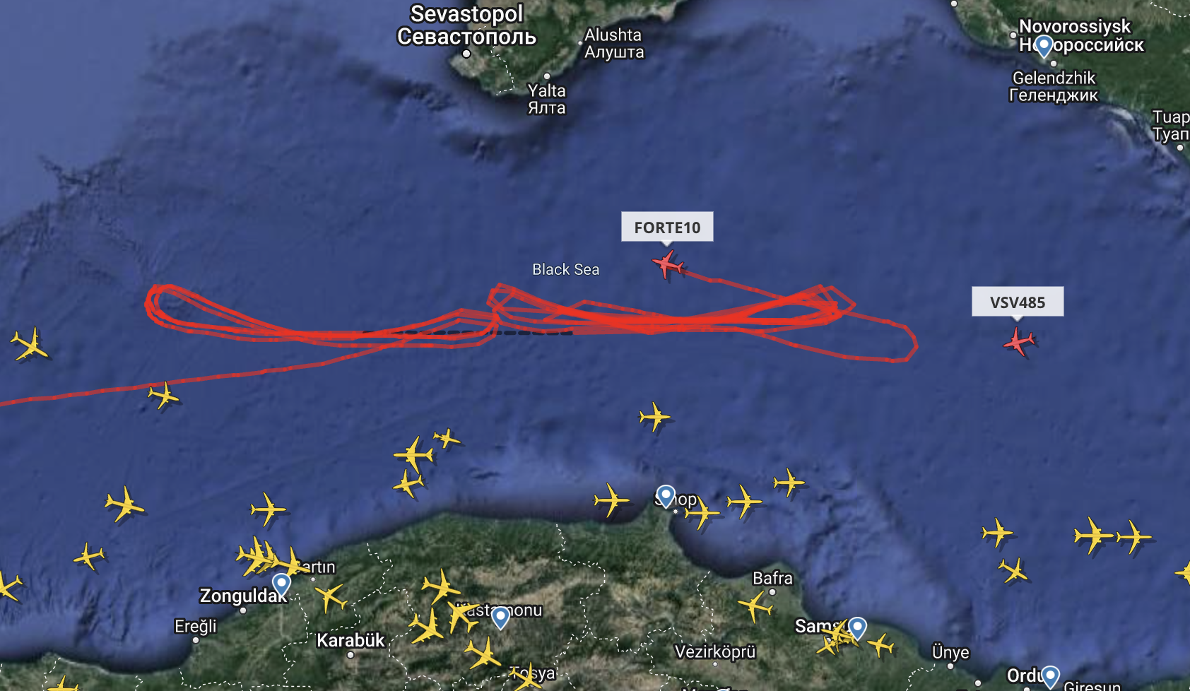 FlightRadar24 is watching the air space around Ukraine, especially after the US drone was pissed on by a Russian jet. They have changed the way the UN countries watch air space, as the blog post demonstrates. The US Navy has been circling, keeping an eye on them.